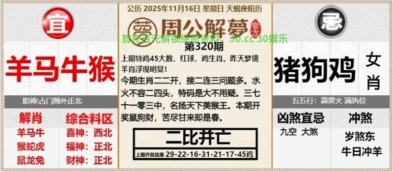 | 319期:二肖 | 羊鸡 | 开:鸡45 |