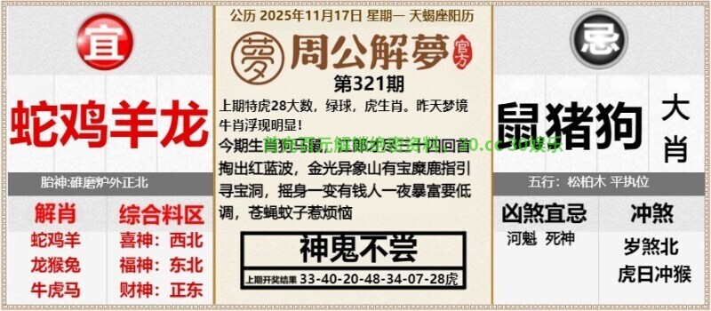 | 320期:九肖 | 狗羊猴虎猪鸡龙牛蛇 | 开:虎28 |