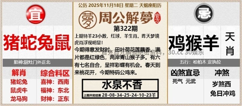 | 321期:六肖 | 猴猪狗羊蛇牛 | 开:羊23 |